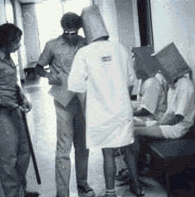 לילה בניסוי הכלא של זימברדו. הסוהרים שמו קרטונים על ראשי האסירים ומנעו מהם שינה.